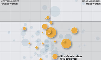 | An interactive look at which of the 100 Best Companies, by industry, have the most women and minorities. (LAUNCH) |